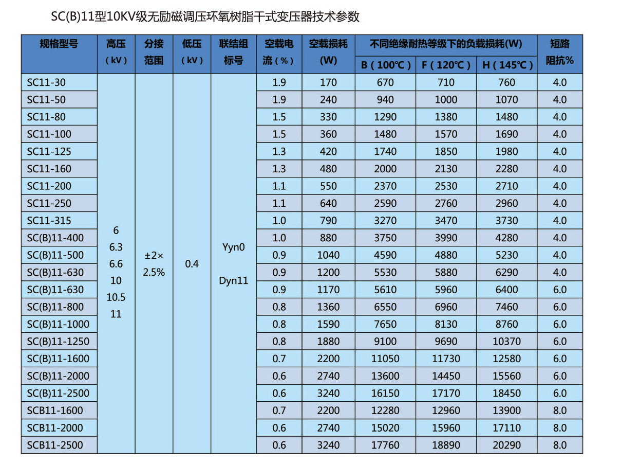 SC(B)12型10KV级无励磁调压环氧树脂干式变压器技术参数