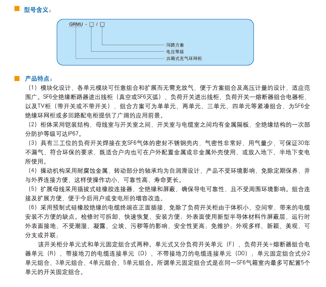 GRMU-12型 全密封全绝缘充气式环网柜
